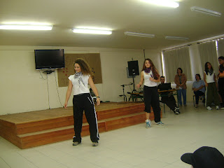 O trabalho com a 7ª01 contou com o auxílio da professora Jacira que, além de contribuir com as discussões culturais, organizou toda a turma com muita animação na hora de dançar!